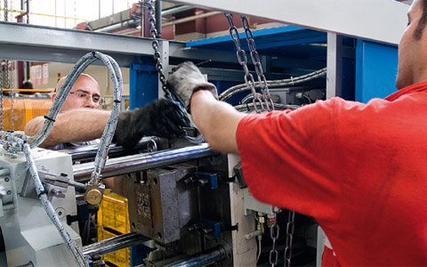 Il porta stampo viene poi montato su un’apposita macchina di pressofusione che permette lo stampaggio a caldo. La macchina viene poi settata tramite un software di ultima generazione in base alle dimensioni dell’oggetto da stampare e alla tecnologia dello stampo.
