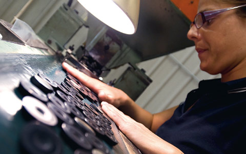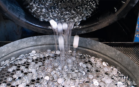 La lavorazione di rondelle grezze, barre di materiale poliestere e di rondelle di materiale naturale avviene tramite l’utilizzo di macchine automatiche per ottenere bottoni finiti da lucidare, oggetti di bigiotteria e accessori in genere.